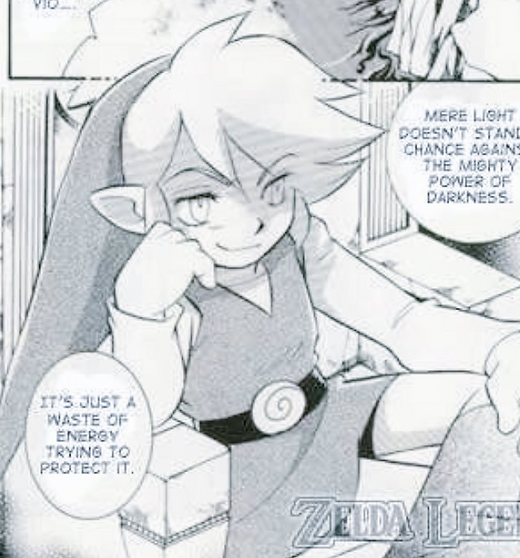 Even so, Link was cocky. He always felt the need to do things on his own, which would get him into plenty of trouble. When he pulled the four sword, Vio would receive part of this cockiness as well, figuring he was too intelligent to fight along side others.